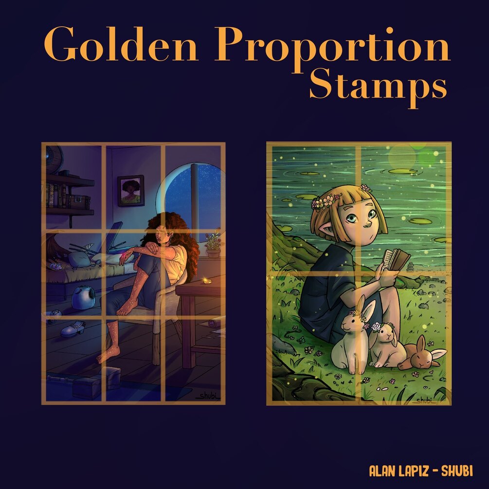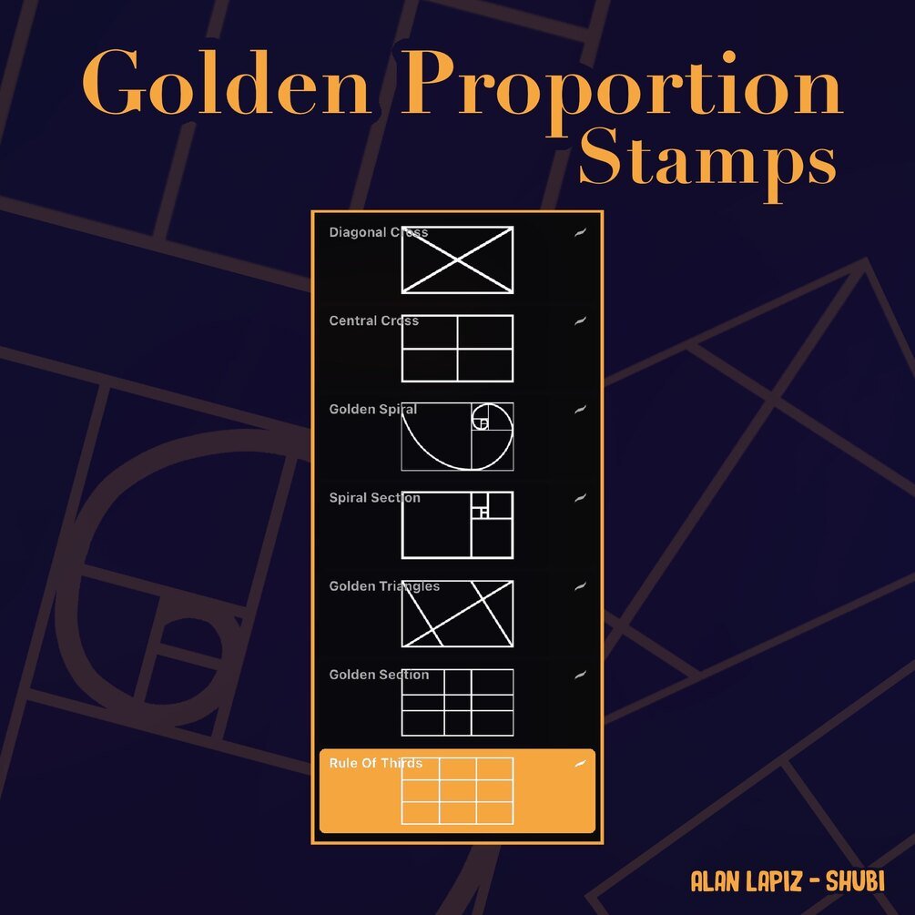These golden ratio stamps are super useful to help you with the compositions of your illustrations. You just have to set it with a touch and adjust it to the size of your canvas.